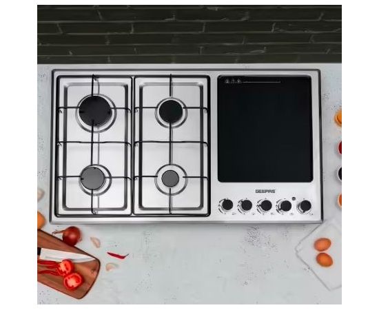 Geepas Stainless Steel Built-In Gas Electric Hot Plate Hob, Automatic Ignition System, 4 Burners & 1 Hot Plate