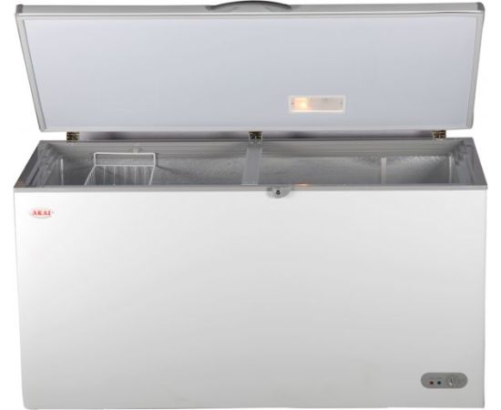 - 1. The Akai 660 Ltrs Chest Freezer has two doors, adjustable thermostat and with aluminum lining inside.