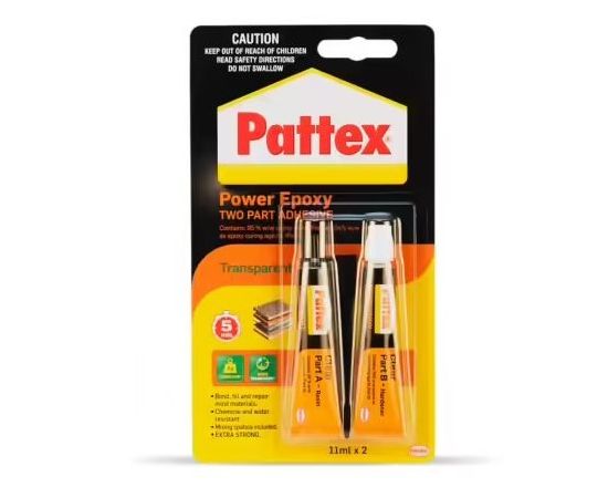 • Clear Epoxy Adhesive by Pattex is a quick-drying, setting, two-section adhesive, gap-filling which gives tough with high bond strengths. The adhesive line is fuel, water, dilute acids, grease, alkali and water.