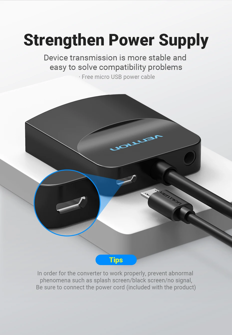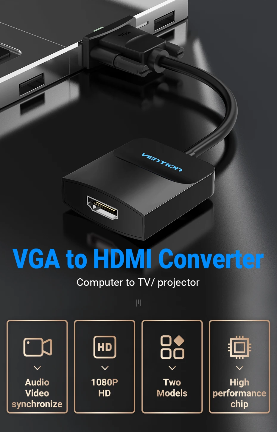 Vention VGA to HDMI Adapter 1080P VGA Male to HDMI Female Converter Cable With Audio USB Power for PS4/3 HDTV VGA HDMI Converter