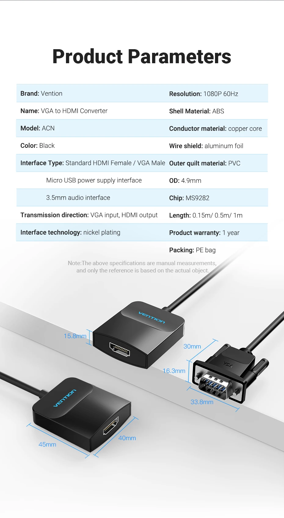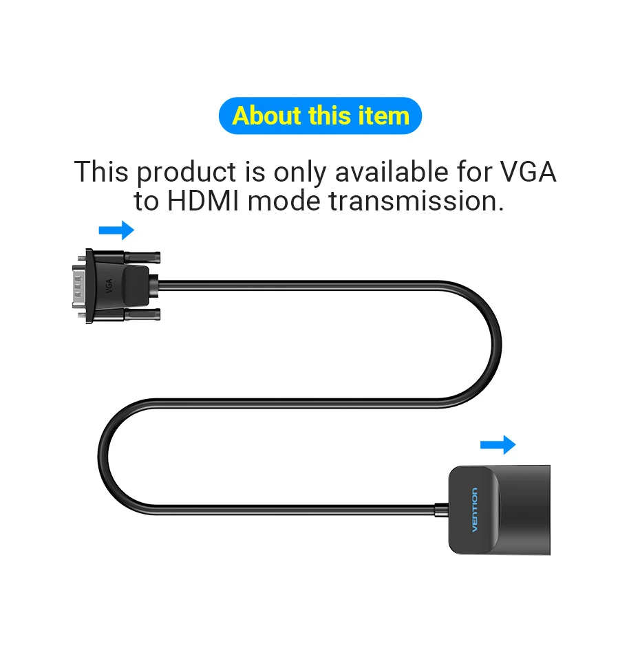 1.This product is only available for VGA (laptop) to HDMI (monitor/TV/projector) mode transmission.