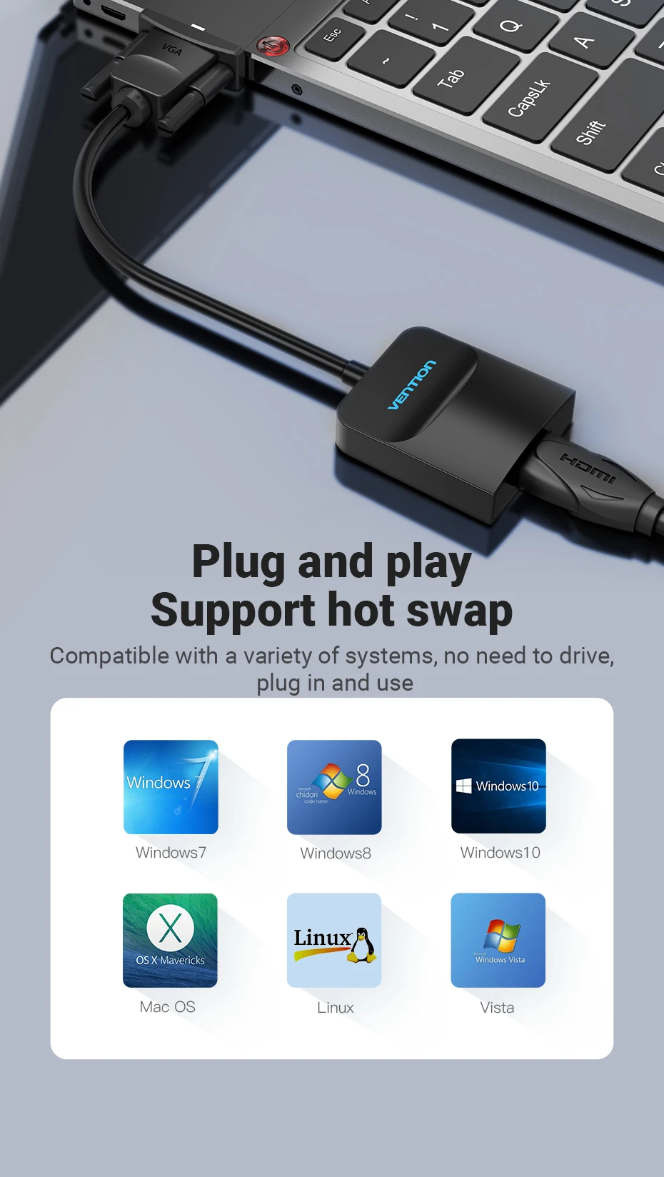 3.Plug and play, use fast, easy to operate, no need to set,Built-in conversion chip, support hot swap