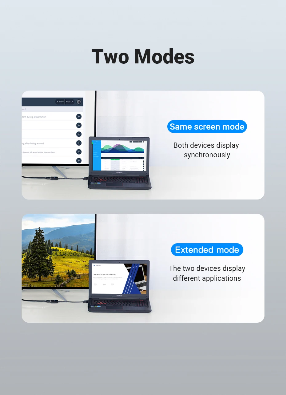 2.Please connect the power cord when using, as devices require extra power.need to connect audio cable to transmit sound when connecting to computer