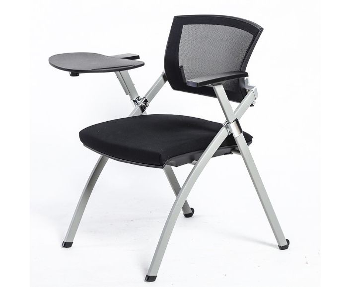 Four leg Silver col. frame with upholstered seat and mesh back with table and coffee holder
