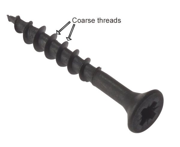 Black phosphate finish that offers better corrosion resistance than the commonly produced black oxide. Coarse threads to secure gypsum board to studs. Phillips Head #2 Drive. Ideal for drywall, wood, and other materials.