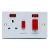 A 13A switched socket with neon lights in a white finish and red rockers, as well as a 45A double pole cooker switch.