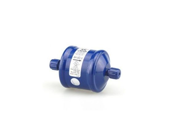 The EK Liquid Line filter drier is a premium compacted bead filter drier with a 20 micron outlet pad for maximum filtration. The EK is a premium universal replacement liquid line filter drier for CFC, HCFC and HFC refrigerants including R-12, R-134a, R-22, R-404A, R-407C, R-410A, R-500, R-502, and R-507.