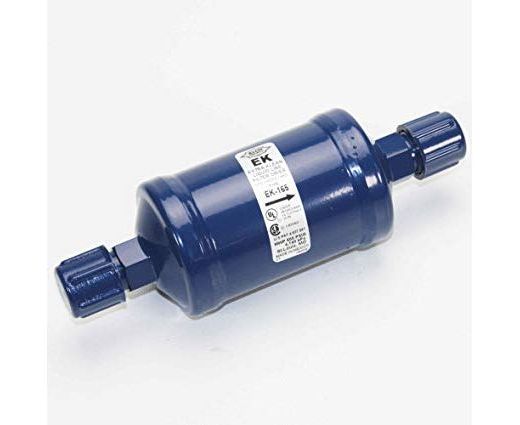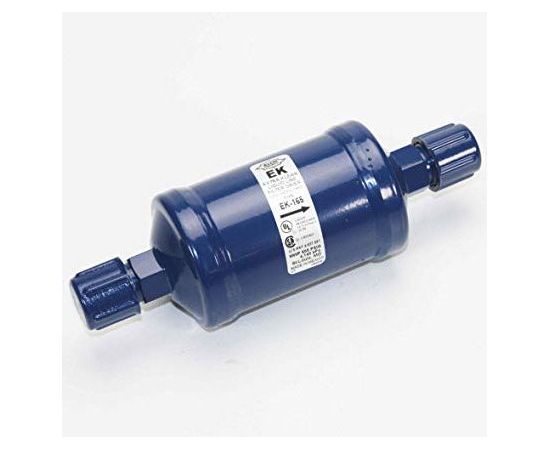 The EK Liquid Line filter drier is a premium compacted bead filter drier with a 20 micron outlet pad for maximum filtration. The EK is a premium universal replacement liquid line filter drier for CFC, HCFC and HFC refrigerants including R-12, R-134a, R-22, R-404A, R-407C, R-410A, R-500, R-502, and R-507.