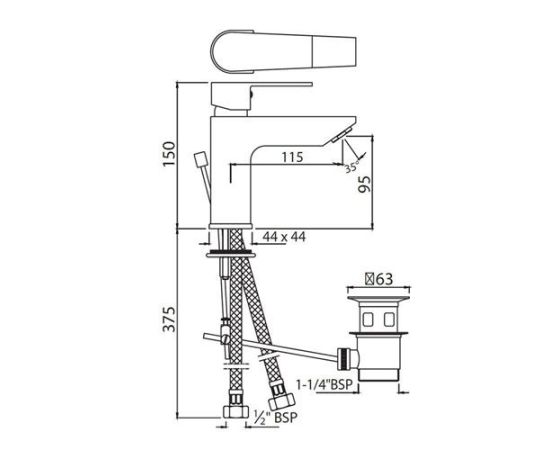 (Height-95 mm) with Pop-up Waste & 375 mm