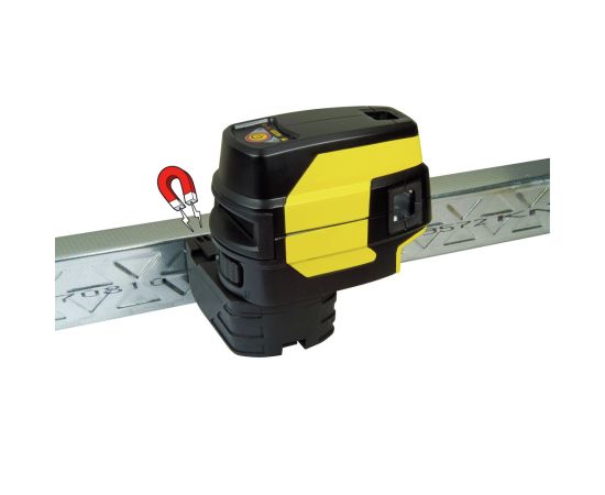 • Working range 30m (spot) / 15m (line) - up to 50m with a detector Accuracy: 0,2 mm/m Projects 5 beams: 3 horizontal, 1 vertical and 1 plumb line Special base allowing magnet to rails + pivoting Magnetically dampended pendulum Out of true level sensor Runs on 3 x AA batteries (supplied) Pendulum lock for safe transportation Rated to IP54 to protect against dust and water splashes