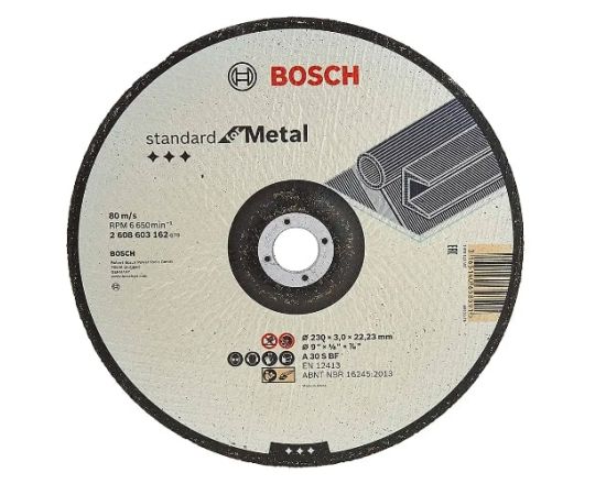 • To cut metal, use this disc. use an angle grinder. Cutting discs from Bosch adhere to the strictest safety standards, including EN 12413.